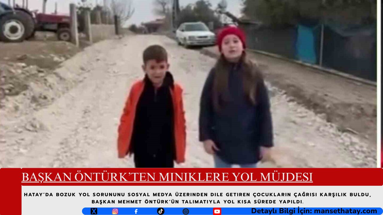 Hatay’da bozuk yol sorununu sosyal medya üzerinden dile getiren çocukların çağrısı karşılık buldu, Başkan Mehmet Öntürk’ün talimatıyla yol kısa sürede yapıldı.