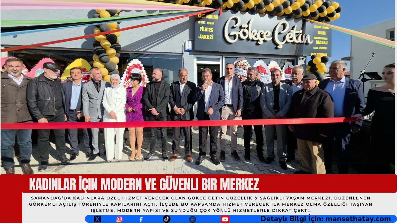 Samandağ’da kadınlara özel hizmet verecek olan Gökçe Çetin Güzellik & Sağlıklı Yaşam Merkezi, düzenlenen görkemli açılış töreniyle kapılarını açtı. İlçede bu kapsamda hizmet verecek ilk merkez olma özelliği taşıyan işletme, modern yapısı ve sunduğu çok yönlü hizmetlerle dikkat çekti.