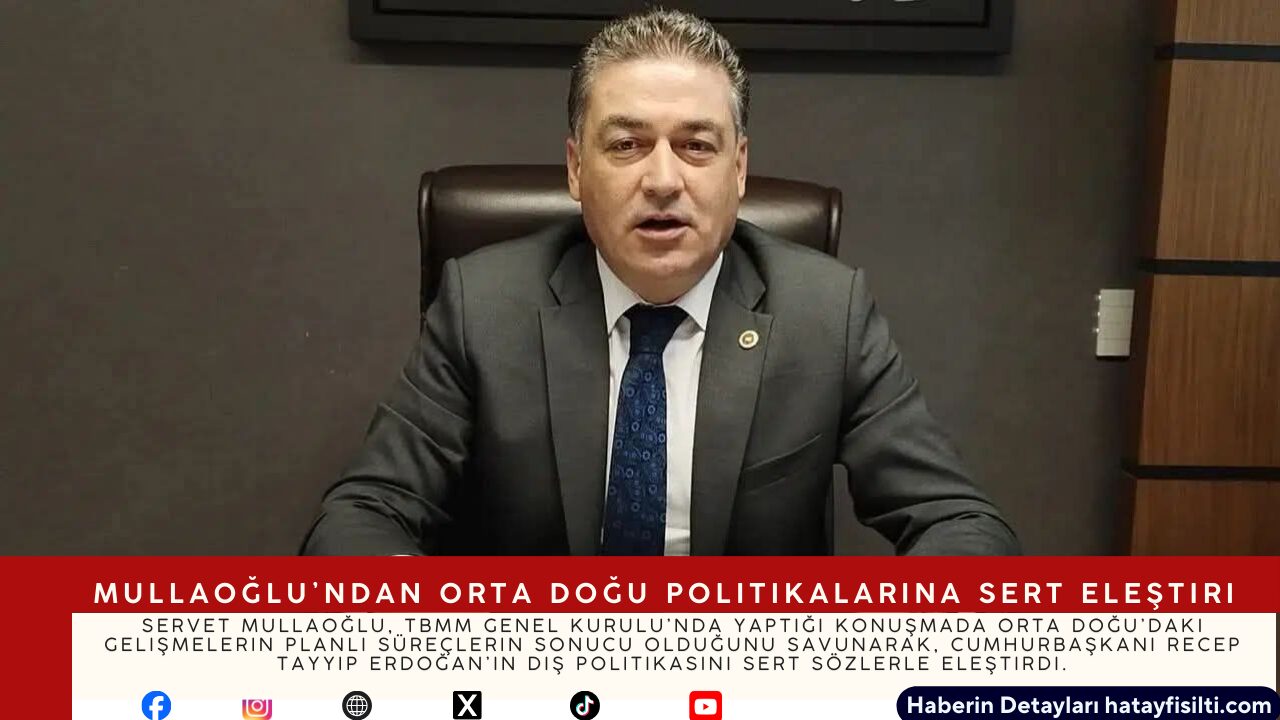Cumhuriyet Halk Partisi (CHP) Hatay Milletvekili Servet Mullaoğlu, Türkiye Büyük Millet Meclisi Genel Kurulu’nda söz alarak Orta Doğu’da yaşanan son gelişmelere ilişkin değerlendirmelerde bulundu. Mullaoğlu, bölgedeki çatışma ve krizlerin tesadüfi olmadığını belirterek, Türkiye’nin dış politika tercihlerinin sonuçlarına dikkat çekti.
